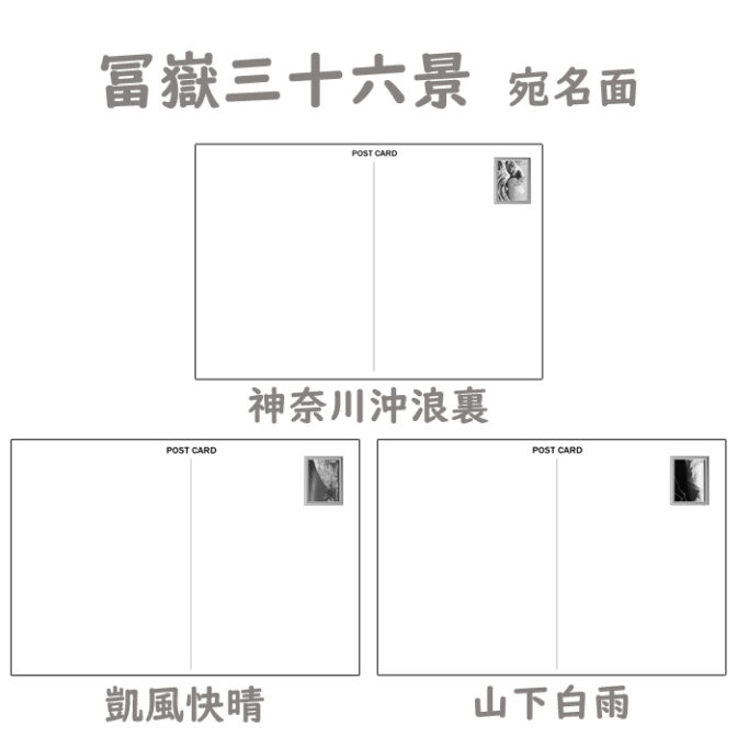 ポストカード 冨嶽三十六景 3枚セット【神奈川沖浪裏・凱風快晴・山下白雨】葛飾北斎 世界の名画